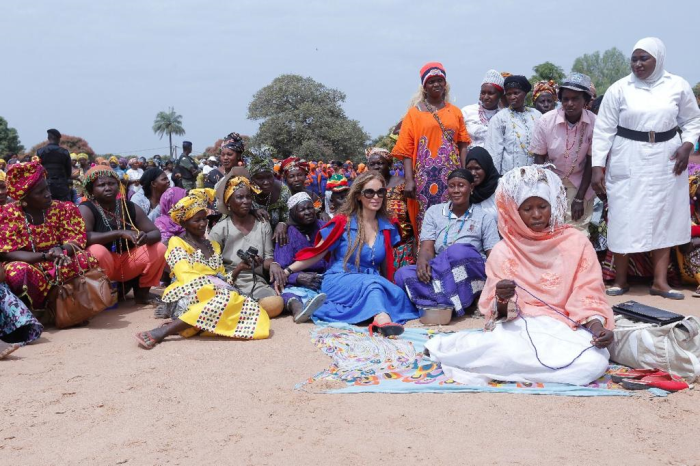 Senator, Dr. Rasha Kelej, CEO of Merck Foundation and President, Merck More than a Mother with infertile women during her visit to The Gambia.