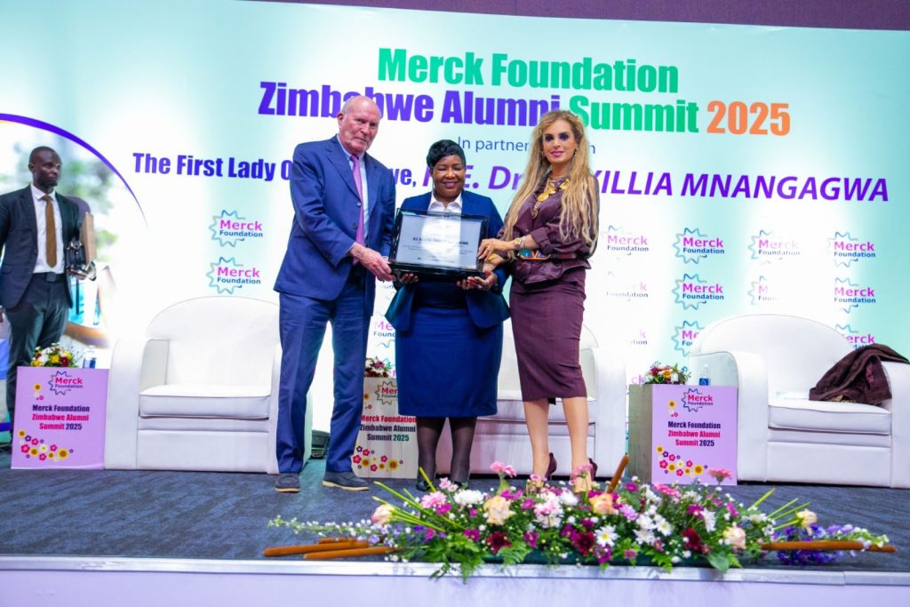 Chairman of Merck Foundation Board of Trustees, Prof. Dr. Frank Stangenberg-Haverkamp, and CEO of Merck Foundation, Dr. Rasha Kelej recognized The First Lady of Zimbabwe, H.E. Amai Dr. AUXILLIA MNANGAGWA during Merck Foundation Zimbabwe Alumni Summit 2025