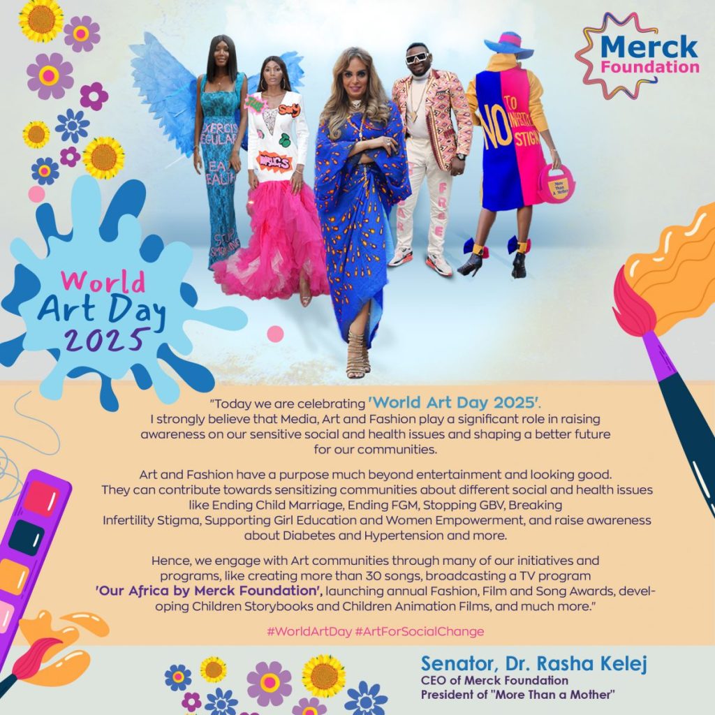 I am delighted to mark ‘World Art Day 2025’ as I strongly believe that art, fashion, and media hold immense power in raising awareness and addressing critical social and health issues—ultimately creating a culture shift in the communities. Art and fashion, to me, go far beyond aesthetics or entertainment, they serve as meaningful tools for education and advocacy. With this vision, we have launched many initiatives including our first-ever pan-African TV program, Our Africa by Merck Foundation, which uniquely highlights pressing issues across the continent through the voices of our ‘Fashion and Art with Purpose’ community. Through this one-of-a-kind show and our other unique initiatives, we continue to raise awareness about critical social issues such as Breaking Infertility Stigma, Supporting Girl Education, Ending Child Marriage and Female Genital Mutilation, Stopping Gender-Based Violence, Women’s Empowerment, and also about health issues like diabetes, hypertension, and much more.