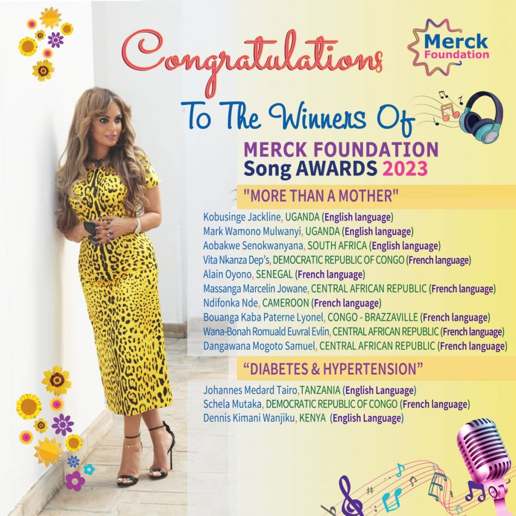 Merck Foundation, the philanthropic arm of Merck KGaA Germany, in partnership with the African First Ladies, announced the winners of Merck Foundation’s Song Awards 2023under two themes – “More Than a Mother” and “Diabetes and Hypertension.”