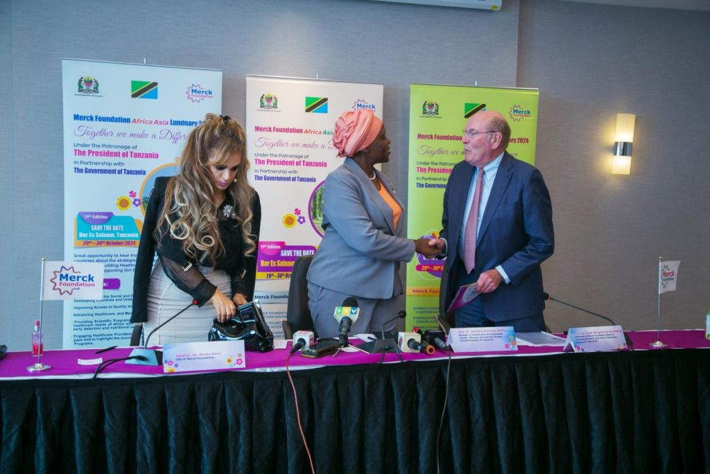 Merck Foundation Chairman and CEO with The Minister of Community Development, Gender Women and Special Groups, Tanzania during the Press Conference in Dar Es Salaam.