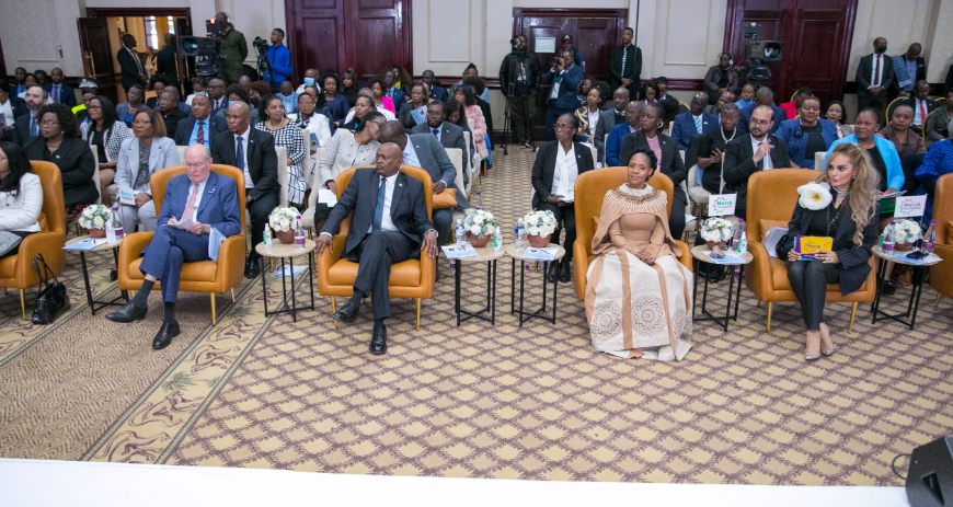 (Senator, Dr. Rasha Kelej, CEO of Merck Foundation, President of “More Than a Mother” Campaign, The President of the Republic of Botswana, H.E. Dr. MOKGWEETSI ERIC KEABETSWE MASISI, H.E. Mrs. NEO JANE MASISI, The First Lady of Botswana, also the Ambassador of “Merck Foundation More Than a Mother” and Prof. Dr. Frank Stangenberg-Haverkamp, Chairman of Merck Foundation Board of Trustees during the launch Program in Botswana)
