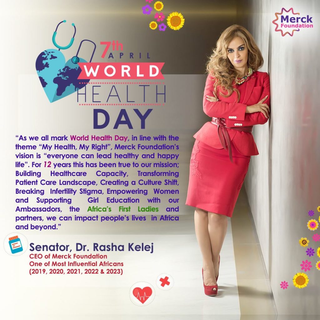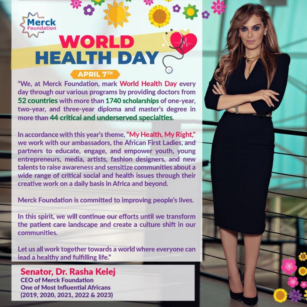 Message from Senator, Dr. Rasha Kelej, CEO of Merck Foundation on World Health Day, 2024.